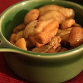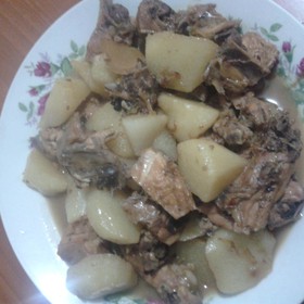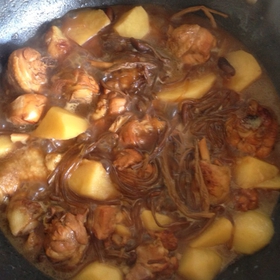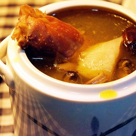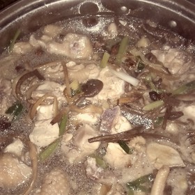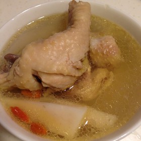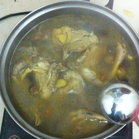 炖鸡汉语拼音:dun ji; 英文名: Stewed chicken 鸡块倒入热油锅内翻炒,待水分炒干时,倒入适量香醋,再迅速翻炒,至鸡块发出劈劈啪啪的爆响声时,立即加热水没过鸡块,再用旺火烧10分钟,即可放调料,移小火再炖20分钟,淋上香油即可出锅;应在汤炖好后,温度降至80-90摄氏度时或食用前加盐。
