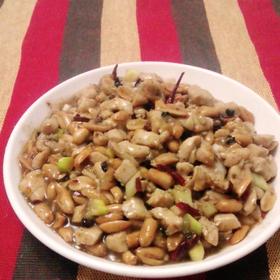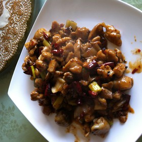 宫保鸡丁,川菜传统名菜,一般认为由清朝四川总督丁宝桢所创。由鸡丁、干辣椒、花生米等炒制而成。由于其入口鲜辣,鸡肉的鲜嫩配合花生的香脆,广受大众欢迎。尤其在英美等西方国家,宫保鸡丁“泛滥成灾”,几成中国菜代名词,情形类似于意大利菜中的意大利面条。