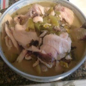 酸菜鱼属四川菜系,以其特有的调味和独特的烹调技法而著称。以鲜草鱼为主料,配以四川泡菜煮制而成。此菜虽为四川民间家常菜,但流传甚广。成菜肉质细嫩,汤酸香鲜美,微辣不腻;鱼片嫩黄爽滑。酸菜鱼流行于90年代初,在大大小小的餐馆都有其一席之地,重庆的厨师们又把它推向祖国的大江南北,酸菜鱼是重庆菜的开始先锋之一。