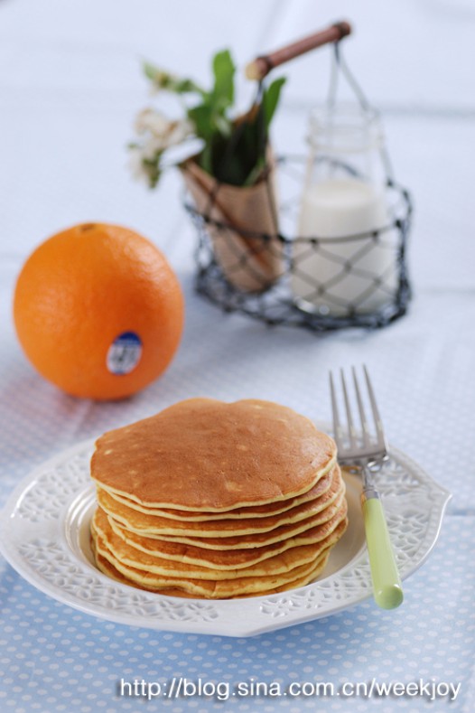 天亮的越来越早,当那缕阳光射入厨房,我们开始忙碌早餐。用几颗新鲜的橙子,鸡蛋,还有面粉,做几片香香的松饼,配一杯牛奶,健康的一天,从此刻开始。这款法式香橙煎松饼用了打碎的橙肉橙汁,加入了少许橙皮,有着非常浓郁的橙香气。