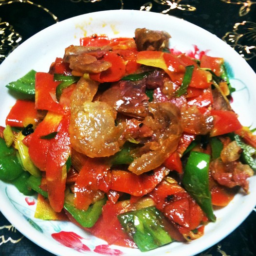 二、加蒜苗及青椒翻炒