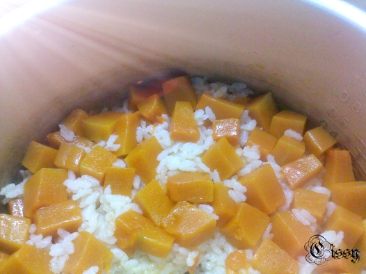 一、用的最原始的电饭锅,只放油会跳起来,所以一起将南瓜放进去了;二、一杯大米是指一、0L豆浆机的量杯;
