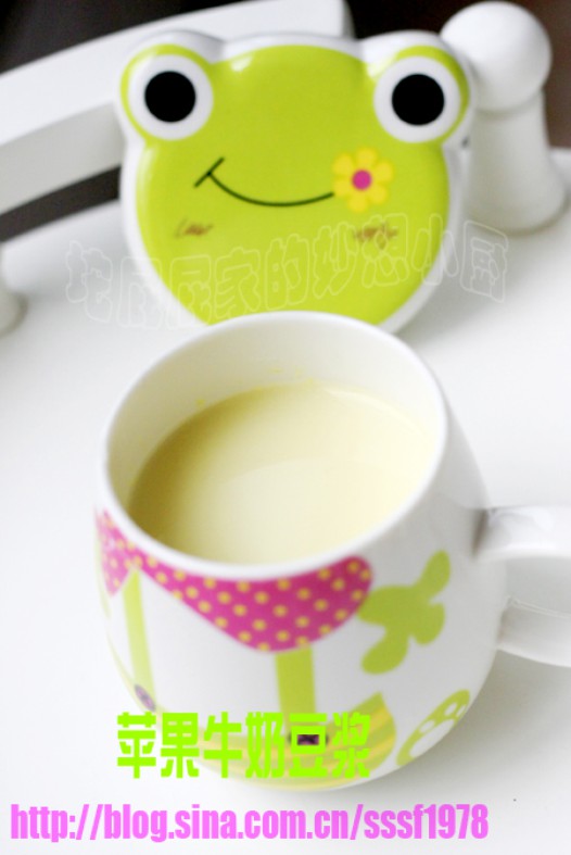 二、将黄豆和苹果倒入豆浆机,加适量的水,选择相应的程序如“湿豆/果蔬豆浆