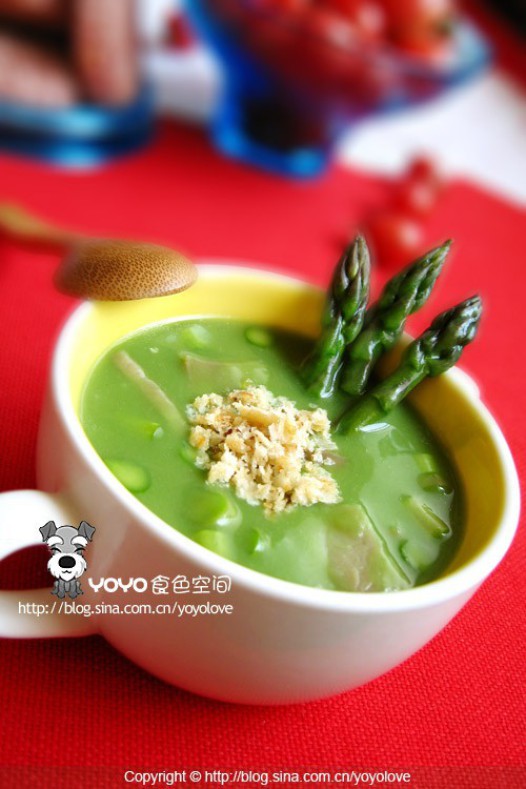 芦笋培根汤,是一道很美味的排毒、保持好身材的西餐汤。很多人认为吃西餐不利于健康,其实这种看法是比较片面的,只要搭配好原料,西餐也可以吃得健康。芦笋学名Asparagus,英文名Asparagus,俗称石刁柏、龙须菜,芦笋有利尿、减轻肾脏负担,实现排毒瘦身的功能。芦笋的嫩茎芳香鲜美,质嫩可口,是一种低热量高营养的入汤保健蔬菜。这道芦笋培根汤可以促进消化,缓解疲劳;有效缓解心脏病、高血压、肾炎、肝硬化等症状;并具有利尿、排毒、保持身材、镇静等治疗作用。