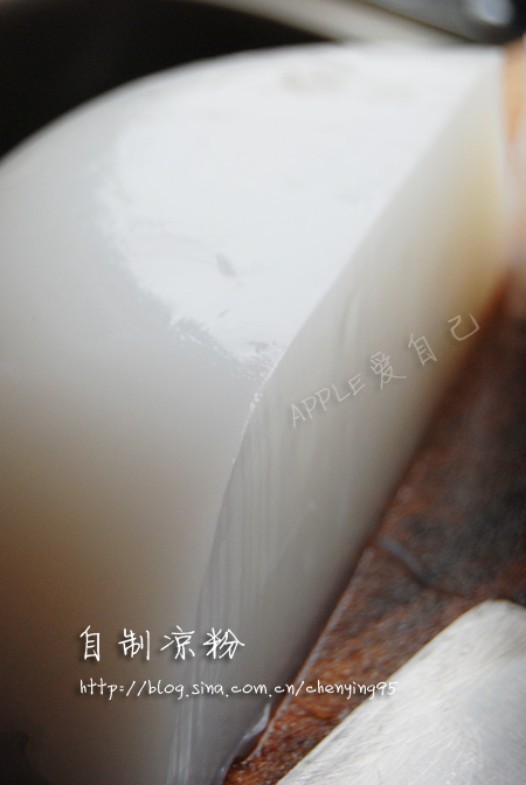 六、 有说放点盐的说法,这样凉粉不容易断,我试过,觉得没什么大的区别,所以放不放随便哈