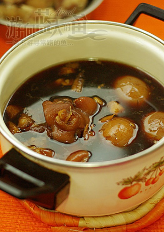三、步骤4其实是个错误的示范,应该先煲姜半个小时再加入糖跟猪脚。如果用添醋可一次性全放。(好友CC做过各种实验后得出的结论。)