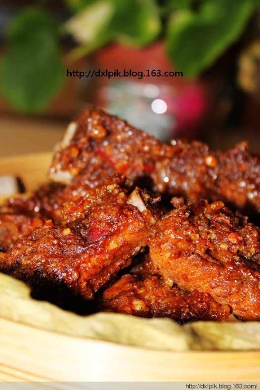 粉蒸排骨,即将排骨腌入味,洒入蒸肉米粉和清水抓匀,然后放入锅中蒸熟即成。唯有用蒸肉米粉,才能做出美味的粉蒸排骨,排骨蒸熟后肥而不腻,软烂入味,咸辣鲜香。但饱吸鲜味的芋头块,才是此菜的精华所在!芋头粉蒸排骨是我最爱吃的一道菜,排骨鲜香嫩辣,芋头糯滑可口,美味无比。另外,排骨的营养价值很高,它除含蛋白、脂肪、维生素外,还含有大量磷酸钙、骨胶原、骨粘蛋白等,可为幼儿和老人提供钙质。