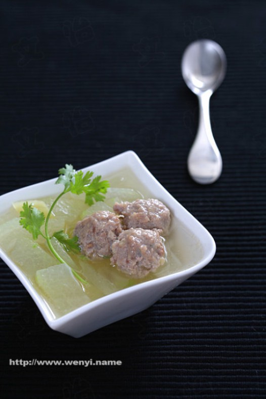 **冬瓜汆丸子,再家常不过了,你可以根据自己的口味,选择用猪肉,牛肉,羊肉馅来做,制作方法都是一样的。**在步骤(2)中,放入调料和蛋清之后,一定要沿着同一个方向快速搅拌,多打一会,肉馅再能上劲儿,否则挤的时候不成型,放到锅中也容易散碎。