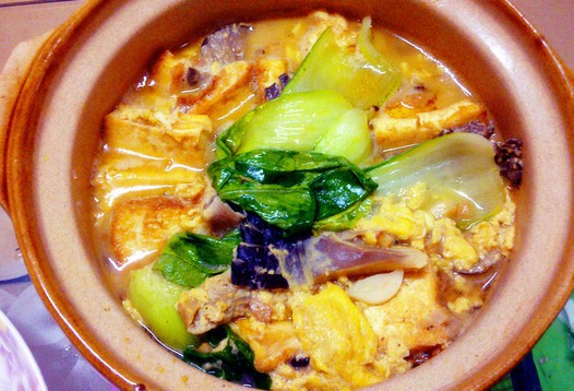 三、砂锅中加中量水,待煮沸,将炒好的平菇,煎好的豆腐放入,添两勺生抽调味