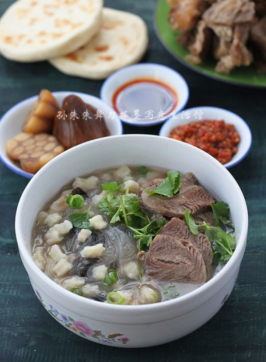 可以在平时有时间或者晚上看书看电视上网的时候煮羊肉汤和羊肉,然后将羊汤和羊肉按照平时的早餐量分成若干份放入保鲜袋冷冻保存,将馍馍也提前烙好分成若干份冷冻保存,睡觉前拿出一份汤肉和馍室温化冻,早晨起来几分钟就煮好了,很方便,如果嫌掰馍费时间,可以直接用刀切成小小的丁就可以了,如果是周末的早晨完全可以悠闲地掰着馍,悠闲地聊着,那会是多么美好的早晨啊!