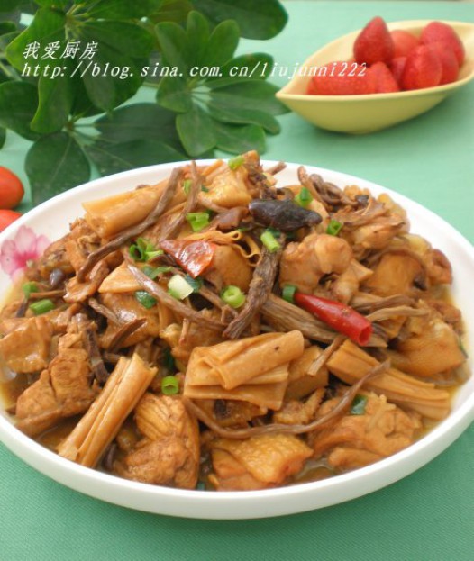 茶树菇腐竹炖鸡肉