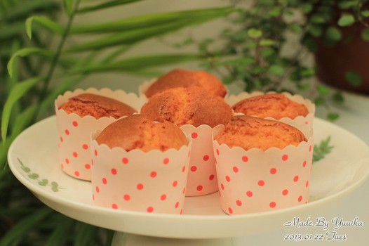 三、准备好7个小麦芬纸杯,将蛋糕混合液倒入纸杯约7分满。