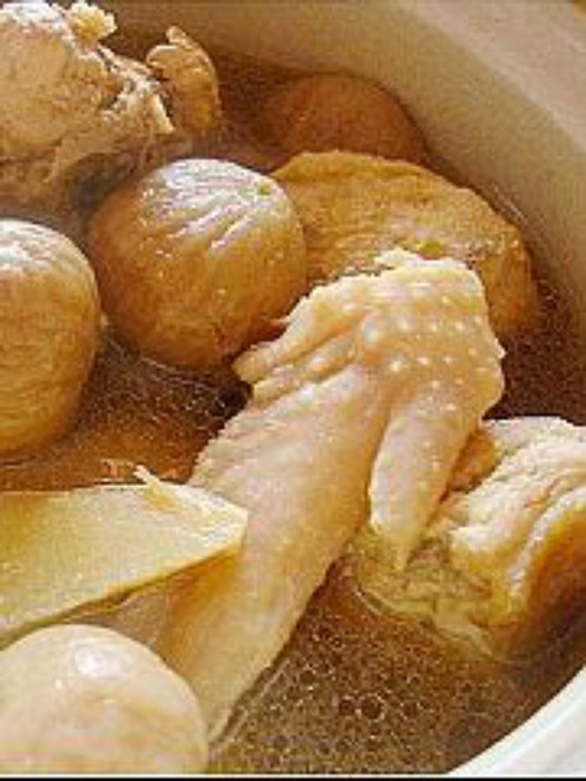 二、锅洗净置旺火上,放清水适量,下鸡翅、香葱、姜片大火烧开后,加少量黄酒继续烧开,转中火继续煮10分钟,即可离火,待其自然冷却