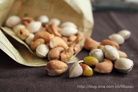 二、坚果放入烤盘,撒没过坚果的盐,烤箱180度,半小时左右,腰果要注意表面露出的如果上色,要及时拿出来翻拌一下,白果有壳只需中途翻一次就差不多了
