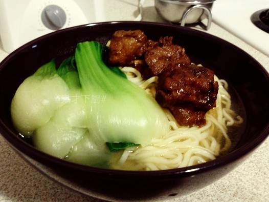 四、腌好的排骨下油锅爆炒,加水淹没排骨大火烧开后再转中火煮20分钟,再转大火收汁。把排骨放进面碗。