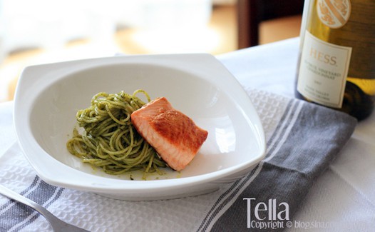 煎鲑鱼青酱意大利面