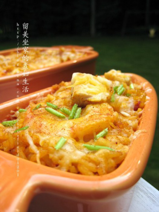 五、装盘,撒少许芝士粉或细条即可食用(可放入200C预热的烤箱中烤至芝士融化增加色泽及口感)