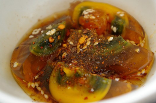一、皮蛋剥壳切瓣待用,入生抽、红油辣椒、白糖、花椒粉、胡椒粉少许、味精少许拌匀即食。