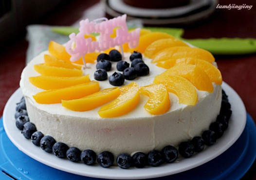 黄桃蓝莓裱花蛋糕