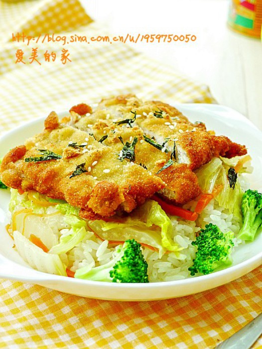 一、吃的时候将菜浇在饭上,再将猪排切条撒一点海苔丝,白芝麻及少许肉松点缀即可。二、煎猪排时火不要大,中小火慢慢煎。