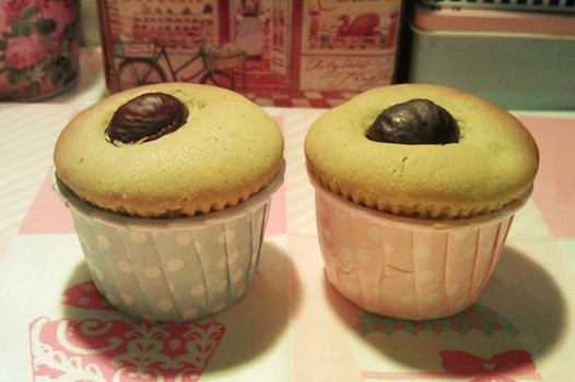 方子依然摘自《超人气杯子蛋糕》,稍微减了糖,省去了白芝麻,然后增加了栗子的分量:)