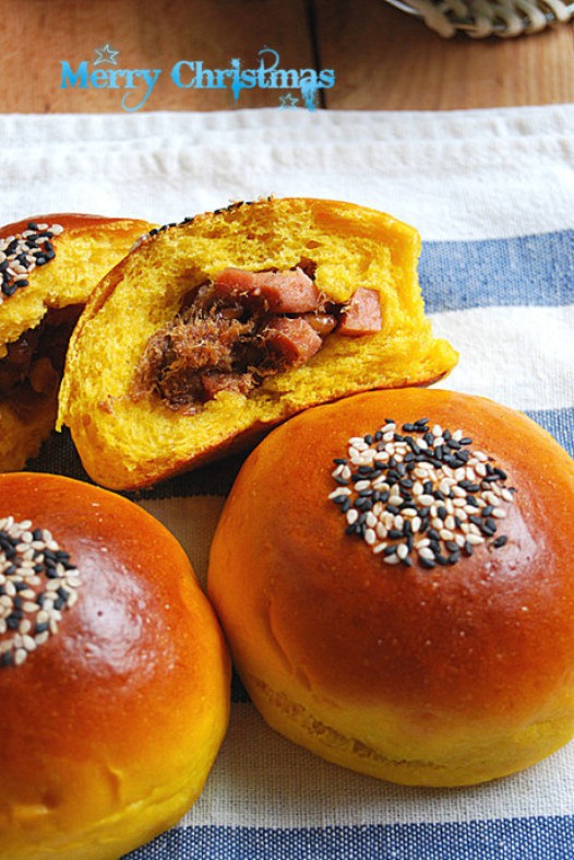 南瓜美乃滋肉松火腿核桃餐包的简介:
