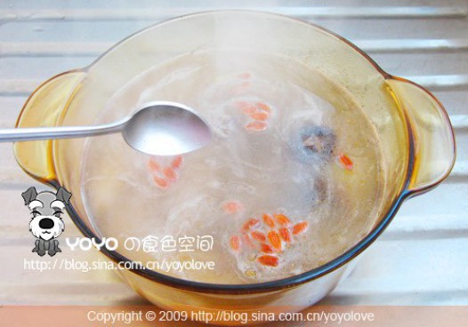 七、最后加枸杞煮开,加盐、胡椒粉调味就可以了