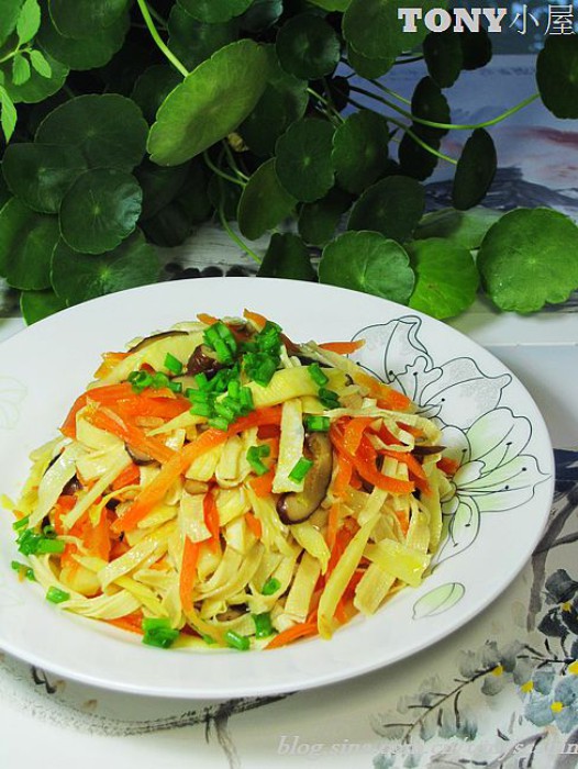一、胡萝卜丝最好用专门的工具刨出来,那样就容易烧的入味,否则生生的感觉就不好了。二、剥好的冬笋一定要在水里焯过,否则口感不好,