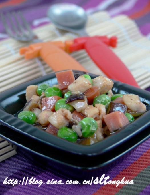 ¶þ¡¢ÓàÓÍÔٷŴнªÁ£±¬Ï㣬ÏÈ·ÅÈëÏÊÏã¹½150¿Ë¡¢Íã¶¹150¿Ë³´Á½·ÖÖÓ£¬×îºó°Ñ¼¦Èâ¶¡»ðÍȶ¡µ¹Ï£¬Èö¼¸Á£Î¶¾«¼´¿É