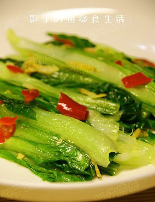 三、然后加入小白菜,稍微炒几下即可出锅