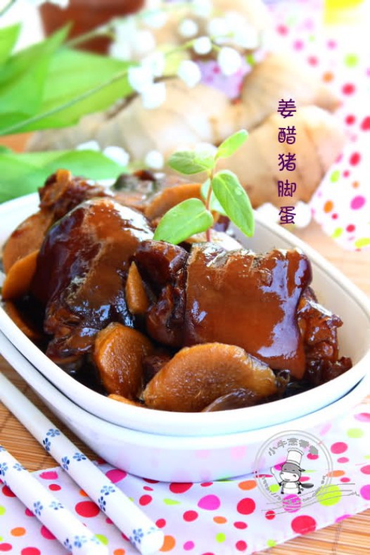 姜醋猪脚蛋,食味独特:“煲透的老姜爽脆而不太辣,猪脚皮软而不腻,香甜而不酸,反复褒之,味愈厚而隽永。”据说在广东,若哪家生了孩子,必会煮上一大锅姜醋猪脚蛋,煮时满屋飘香,有朋友到来探访,捧出一碗,无不交口称赞。值得注意的是,对体质偏寒、或久病体虚的男人或老人,也适宜食用。当然对体质偏燥热的人,尤其夏天就不宜多吃。
