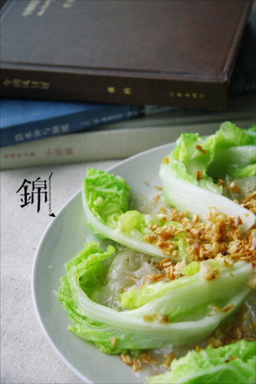 蔬菜与粉丝配上炸好的蒜粒很香。炸蒜的时候注意时间避免炸糊。