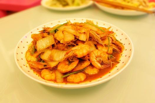 其实只用白菜叶味道更好,炒的时间变短也可以避免虾炒老。这个菜一次吃不完下次还可以再加点菜叶焖一分钟,还是很好吃。