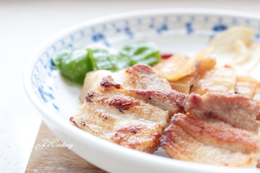二、平底锅烧热后转小火,放入五花肉,于是,你就会慢慢味道肉的香味了
