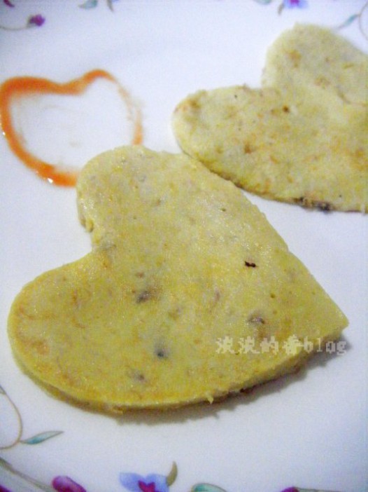 香蕉泥也可料理机打成泥,喜食果肉口感的只需要压碎即可。没有模具可真接倒入锅内,呵呵,我这是图好玩用的模具。如香蕉不太甜可适量加点糖。