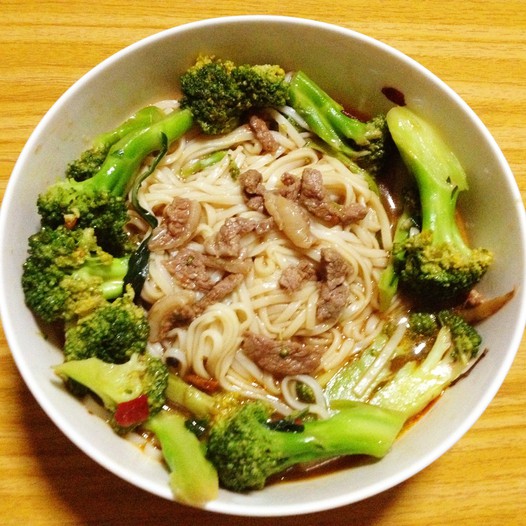 冰箱里只剩下了西兰花和牛肉,于是变成了西兰花牛柳面。