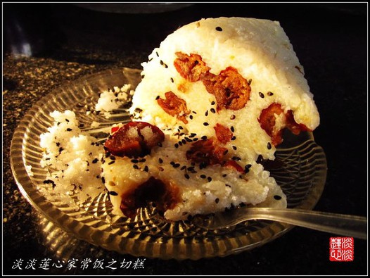 七、可以了,切小块,吃。这个还加了黄米,金玉相间,色味俱佳。