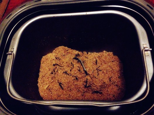 五、放在面包机里,按自己口味加料,我做的是五香口儿的,就加了糖、盐、鸡精、五香粉、辣椒粉、酱油,酌量放,炒匀了可以尝尝味道,不够再加