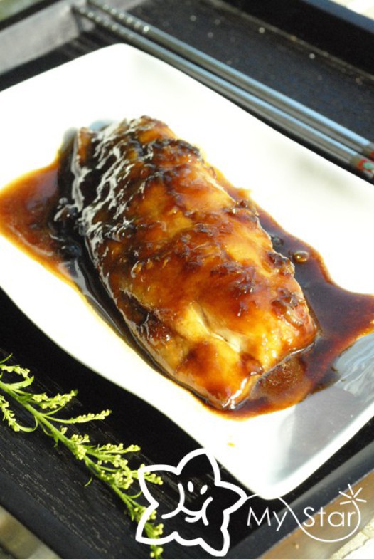 日餐中用鲷鱼比较多,这种鱼是冷冻鱼,一般是以鱼肉块销售,没有刺,非常适合这样烹饪。当然,其·他少刺、肉厚的鱼也可以了。