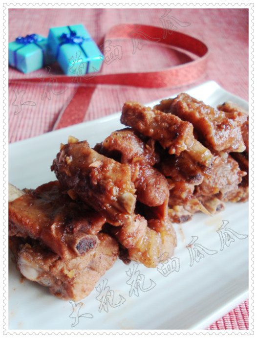排骨是这餐的主打,再好好利用一下我的烤箱。借来文怡姐姐的方子,果然很灵。就是叉烧酱难买一些,跑了好多超市都没有,最后在青石桥的大市场上买到的。很累。一出烤箱,香气扑鼻,把诸位朋友谗死了。先留了几块起来给西瓜爸爸,各位看得眼睛都快掉下来了。吃起来就更不一般了,虽然众口难调,但也有众口一致称赞的时候,比如这个时候。当然,也得到了西瓜爸爸的表扬,我真替他有这么能干的女儿感到骄傲。