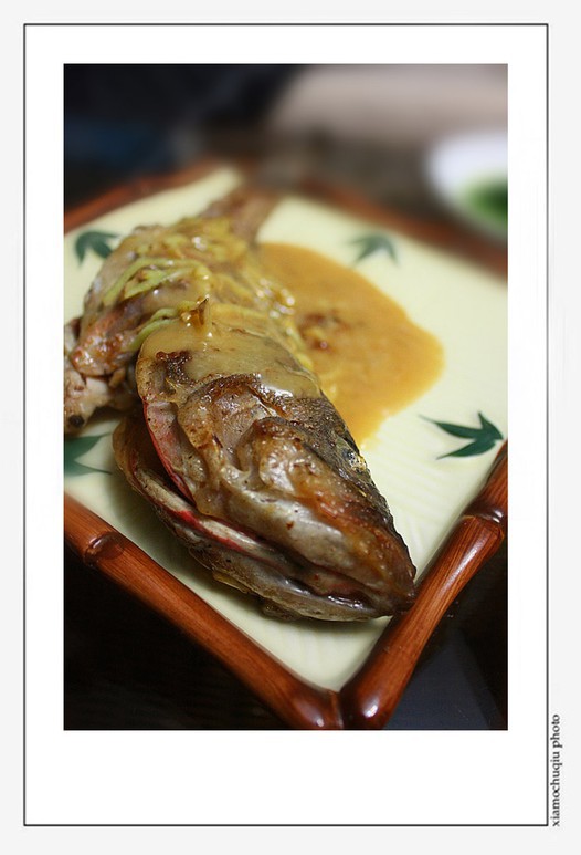 五、待鱼皮金黄,姜丝和调料汁(鲍鱼汁,白糖,少许盐,水)