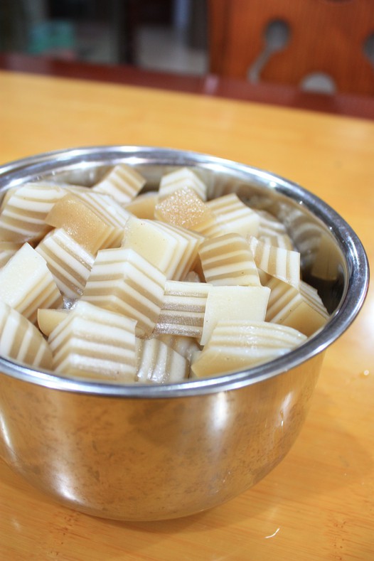 四、椰汁部分:马蹄粉120g+糖200g+椰浆400ml+水350ml,过筛混合搅拌均匀;