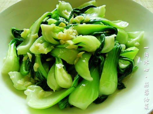三、下油菜,炒软叶片,加盐调味,出锅装盘。