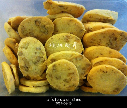 一、1黄油,糖粉打发白3min.慢慢加入蛋清,加入面粉核桃搅匀即可。放入冰箱冻凉20分钟,用手揉匀成圆棍状再次入冰箱冻硬20min切成2mm片状码放在烤盘上,放入烤炉,170度,烤10分钟左右