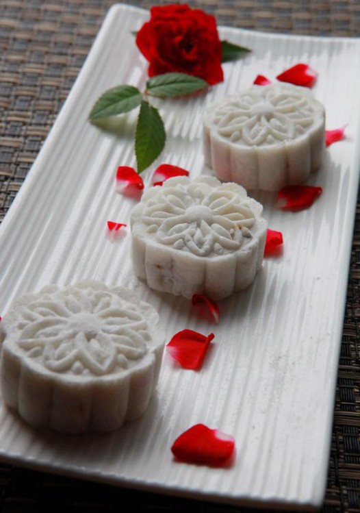 四、取适量糯米山药泥在手中摊开,包入适量红枣泥收口搓圆,入模具压成形即可