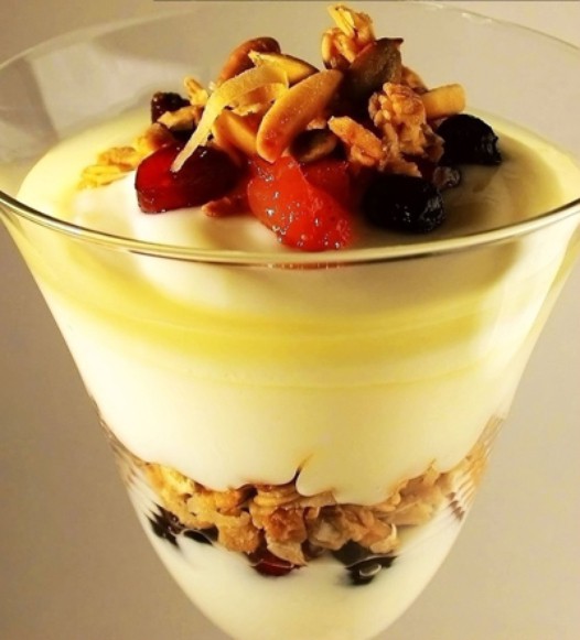 一、将坚果(核桃,杏仁,碧根果,巴达木等)去壳,捣碎,洒在做好的鲜尤酸奶上,均匀即可,坚果香味浓郁,有丰富的蛋白质等营养物质,很适合孕妇和儿童的营养需求。