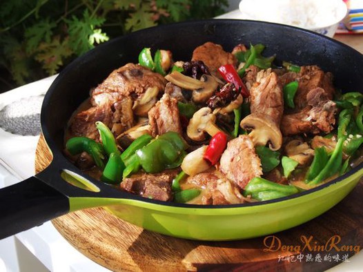我家最常见的就是这荤素搭配的菜肴。比如这道,有排骨,有蘑菇,有蔬菜,酸碱平衡,营养美味。虽然一餐只有这一个菜,可并不觉得单调,无论是食材种类还是口味。家人也从没觉得我在糊弄他们。呵呵,其实,貌似也有这个嫌疑。