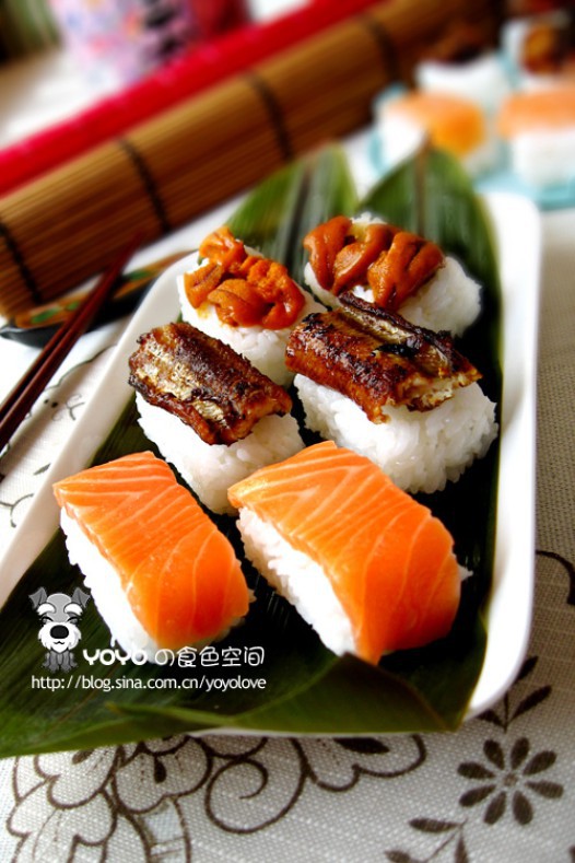 早晨起得早,跑到早市看到了难得一见的紫海胆,赶紧拎了一兜回来,正好还有昨天处理好的鳗鱼,焖上一锅子的米饭,就可以吃上新鲜营养的海鲜饭团了。一粒粒晶莹饱满的米粒,用盐白糖米醋一拌,搭配上新鲜的鲑鱼、紫海胆和鳗鱼段,吃的美味健康而饱足。说到海鲜寿司,追本溯源是在中国。早在1800多年前的后汉,寿司就已经被当时的中国人食用,特别是我国沿海一带的商旅,先把米饭用醋腌好做成饭团,再搭配上海鲜或肉类,压成一团团的小块带在路上,作为沿途的食粮,便于携带又方便保存。后来,到了公元700年的唐朝,寿司才传到了日本,而这两个字首次出现在日本的文学里,更是到了18世纪。寿司不仅色彩丰富、形状多变,又是低卡路里、低脂肪的健康食物,它可以用各种新鲜的海鱼、河鱼和贝类自由组合,搭配出充满想象力的美味,看到鱼生的艳丽色彩,就可以让人胃口大开了。每样食物都有根和叶脉,每种美食也都有精彩和乐趣。追随自然季节的交替、适时的享用,一定可以精彩万分、乐趣无穷。