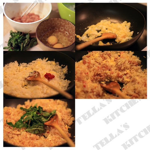 二、隔夜饭加上盐抓匀,鸡蛋打散