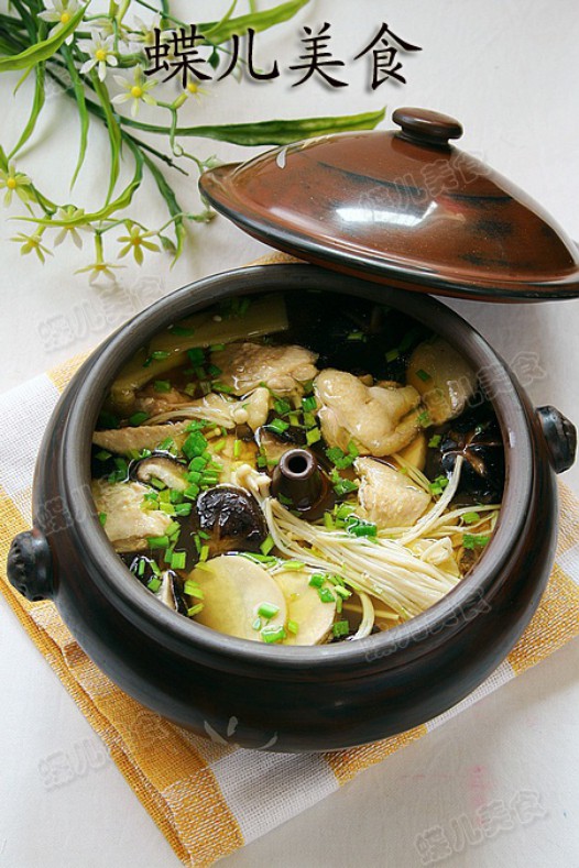 三鲜菇花雕汽锅鸡